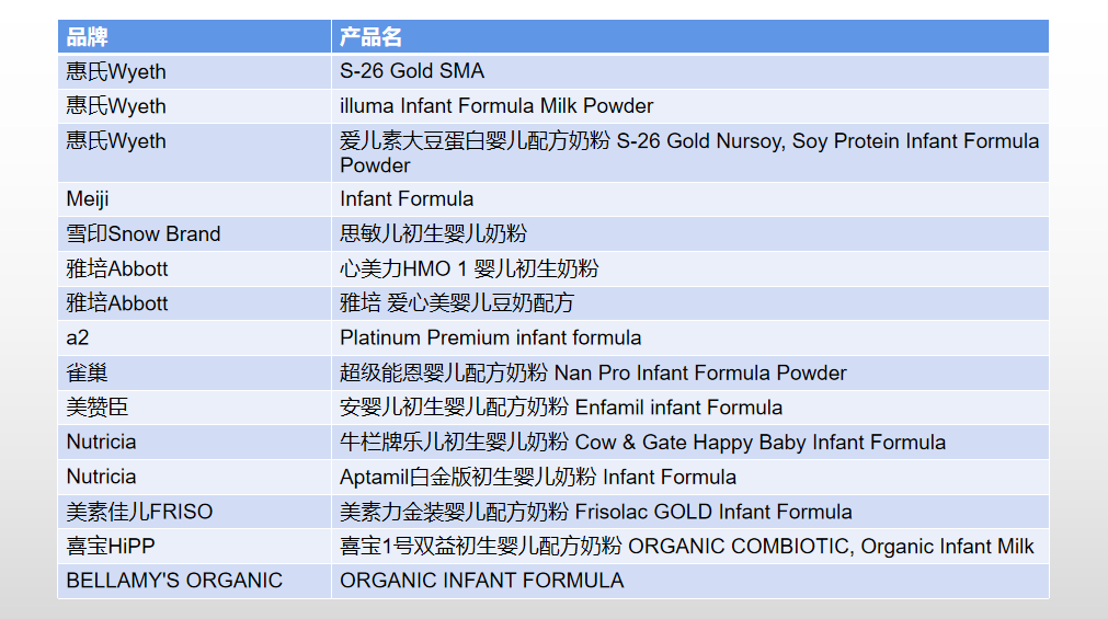 含量由每公斤1.1微克至29微克,检出值最高的样本为“雪印敏儿初生婴儿奶粉 Smart Baby INFANT FORMULA”。