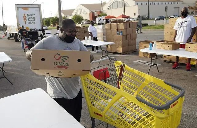 截至8月13日,美国全国失业人口达到2800万人,美国德克萨斯州新冠疫情严重程度排名全国第三,为了领救济粮,人们甚至从非常远的地方赶到德州北部的食物银行。
