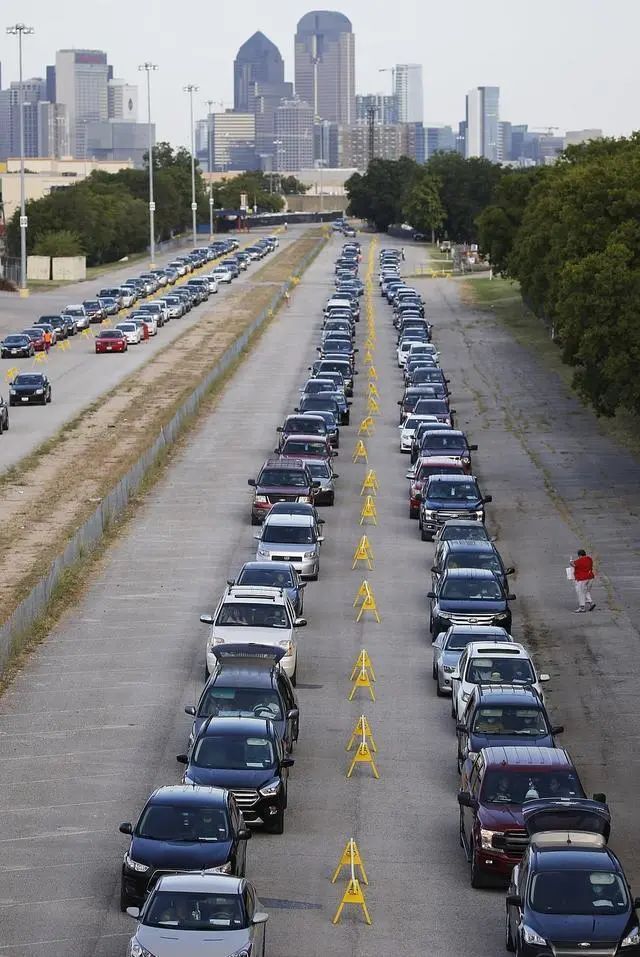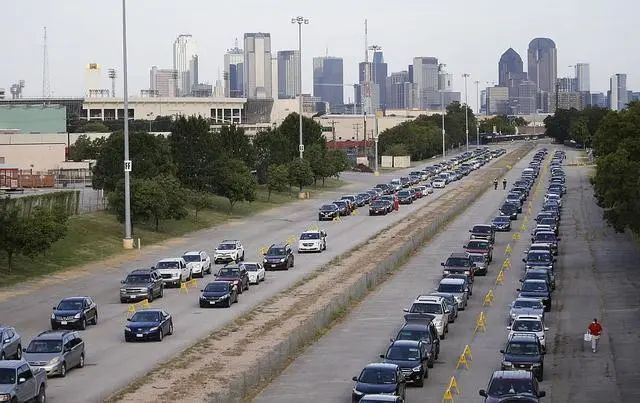 自3月新冠疫情被宣布为全球大流行疫情后,德克萨斯州达拉斯郡的博览会公园已经举办了4次食物救济活动。