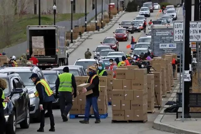 过去在美国,食品银行是专门接济当地穷人、发放食品的慈善组织,现在消息传开后成为了很多普通美国民众的求助对象,成千上万美国人开着汽车排队通宵等待领取食品援助。