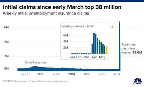 美国劳工部:3-5月申请失业救济的美国公民增加到3860万人