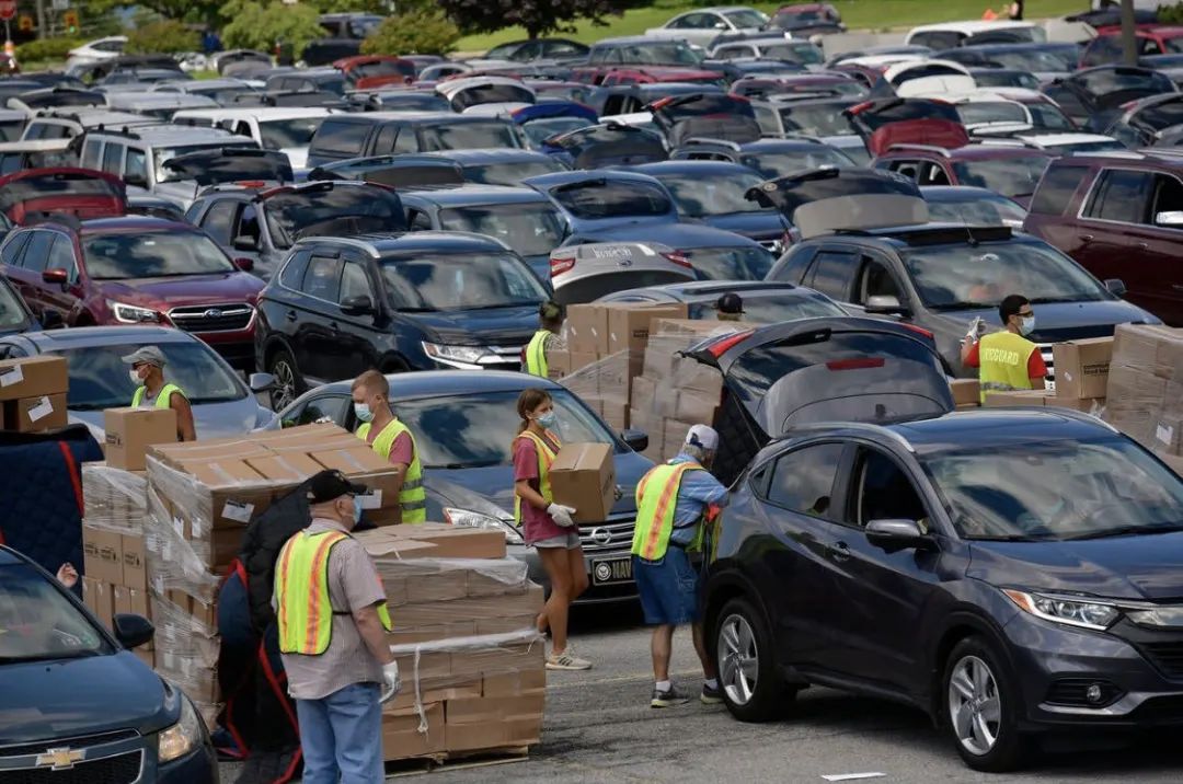 8月5日 宾西法尼亚州 志愿者正搬运救济食物 图源:《华尔街日报》