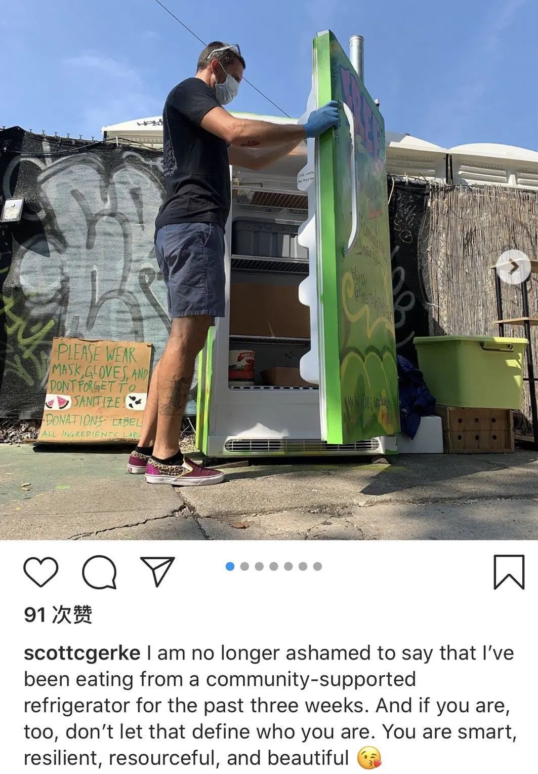 一位名叫斯科特·德克的网友在社交媒体上分享自己使用“爱心冰箱”的故事:他已经靠“爱心冰箱”生活了三周。